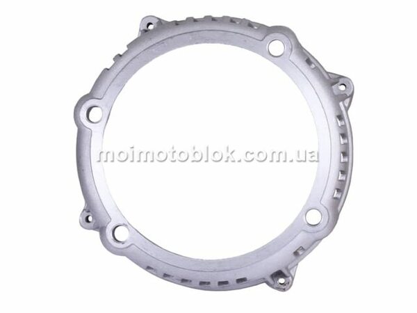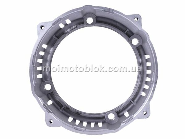 Передняя крышка генератора используется в моделях мощностью 5-5.5 кВт. Она защищает переднюю часть корпуса, обеспечивает правильную фиксацию подшипников и внутренних элементов, а также герметичность узла. Изготовлена из прочных материалов, что гарантирует долговечность и надёжность в работе генератора.