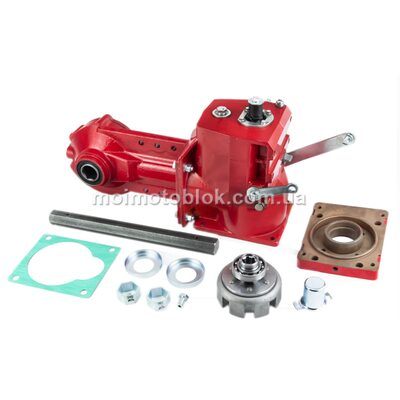 Редуктор полуоси с коробкой передач 2+1 в полной комплектации подходит для мотоблоков с воздушной системой охлаждения. Предназначен для привода колёс и работы с фрезой или прицепом.