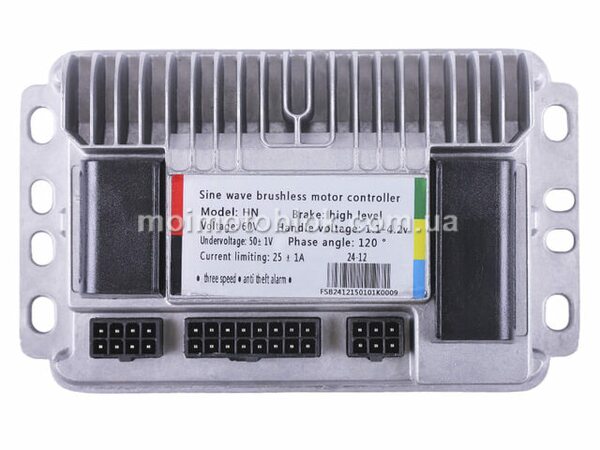 Контролер для електровелосипеда 500W забезпечує стабільну роботу електросистеми та комфортне керування транспортом. Пристрій працює з напругою 60 В і має знижений поріг 52±1 В, обмеження струму 30±1 А, а також фазовий кут 120 градусів. Напруга дроселя становить 1.1−4.2 В. Габарити контролера — довжина 154 мм, ширина 94 мм і висота 40 мм, міжцентрова відстань отворів кріплення 52-140 мм. Вага пристрою 480 г. Виконаний із комбінованих матеріалів, він відзначається надійністю та довговічністю.