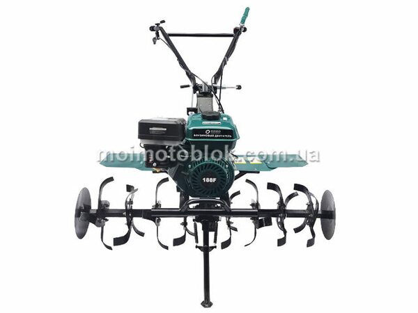 Мотоблок TATA TT-1100FZX Green — потужний представник середнього класу з бензиновим двигуном 188F потужністю 13 к.с. та об’ємом 389 см³. Чотиритактний одноциліндровий мотор забезпечує високий крутний момент, витривалість і стабільність роботи навіть на важких ґрунтах. Повітряне охолодження гарантує надійність під час тривалих навантажень.
