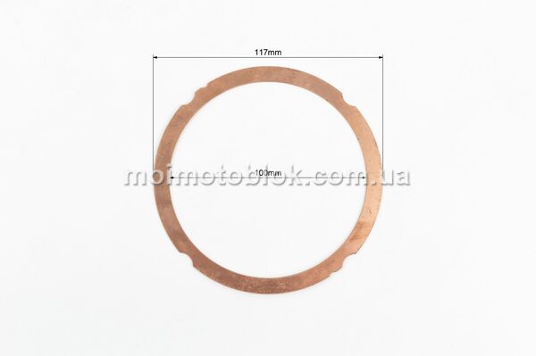 Прокладка головки циліндра для дизельного двигуна 1100F з діаметром 100 мм. Виготовлена з міді, що забезпечує надійну герметизацію між блоком і головкою циліндра. Застосовується для відновлення стиску, захисту від витоків газів і охолоджувальної рідини. Сумісна з багатьма двигунами потужністю 7–10 кВт.