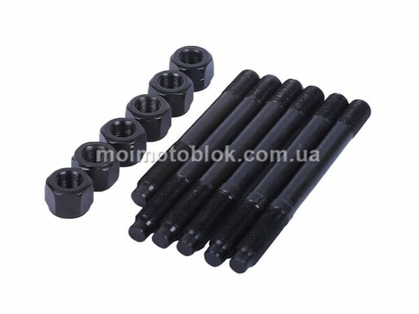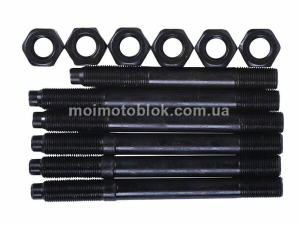 Комплект шпильок і гайок для кріплення головки ZH1125N включає 6 шпильок довжиною 175 мм та діаметром різьблення 15 мм, а також 6 міцних гайок. Забезпечує надійне з’єднання головки циліндра з блоком двигуна, витримує високі навантаження і гарантує довговічність роботи мотора.